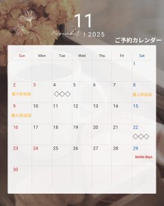 11月工房ご予約カレンダー